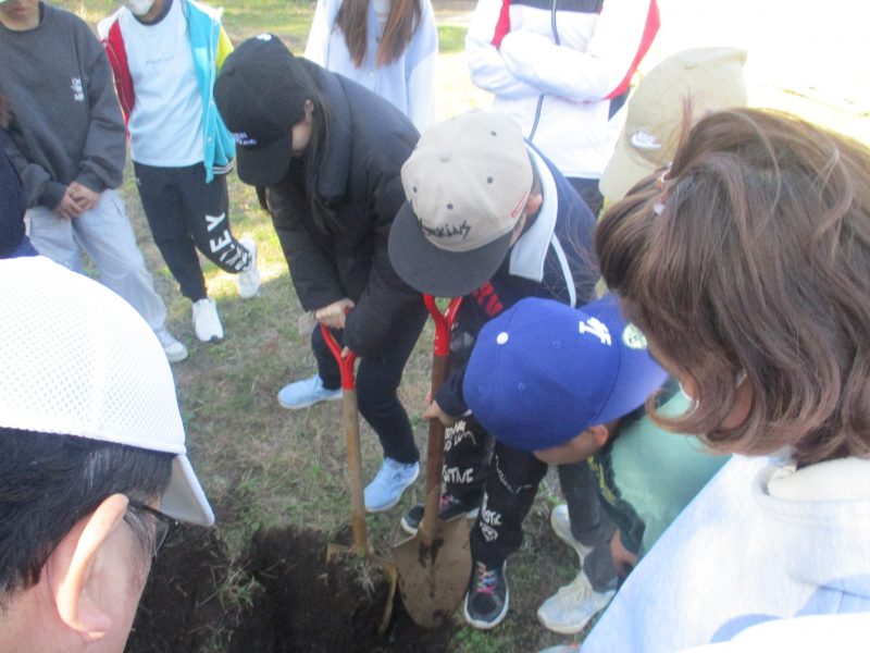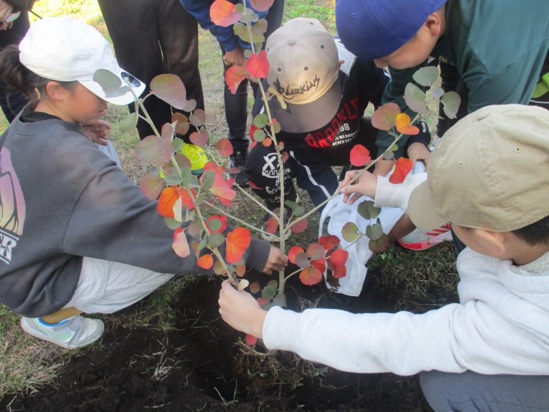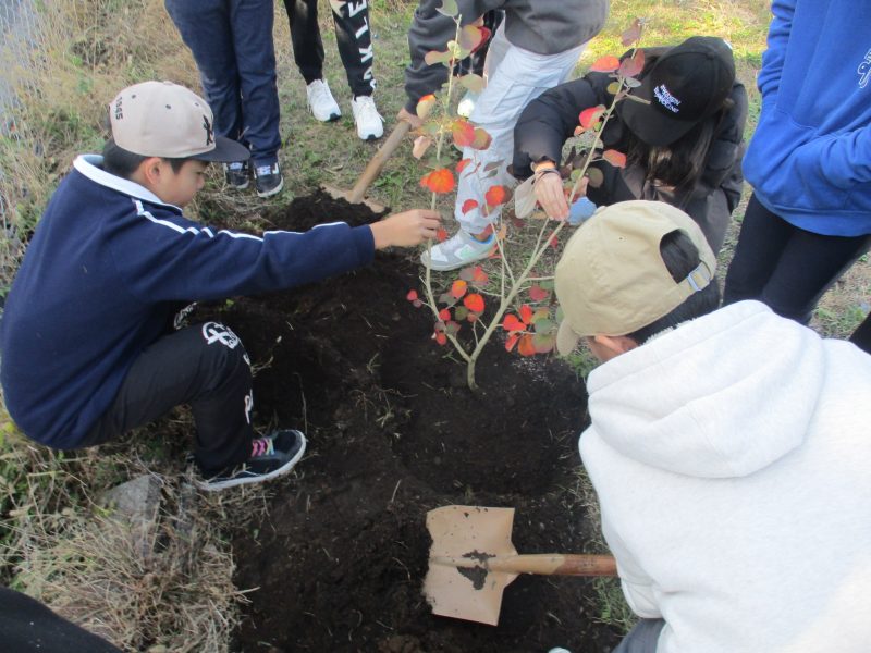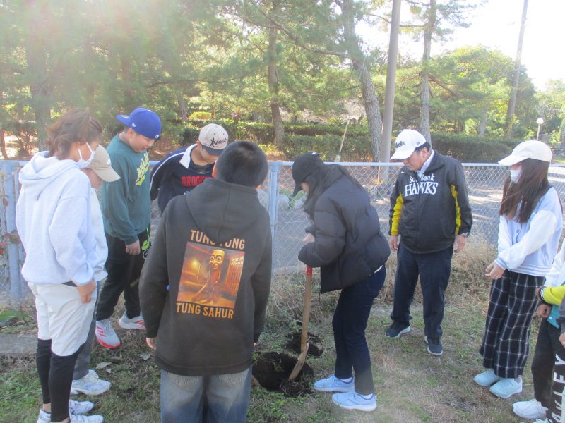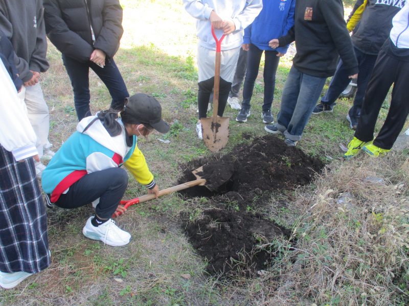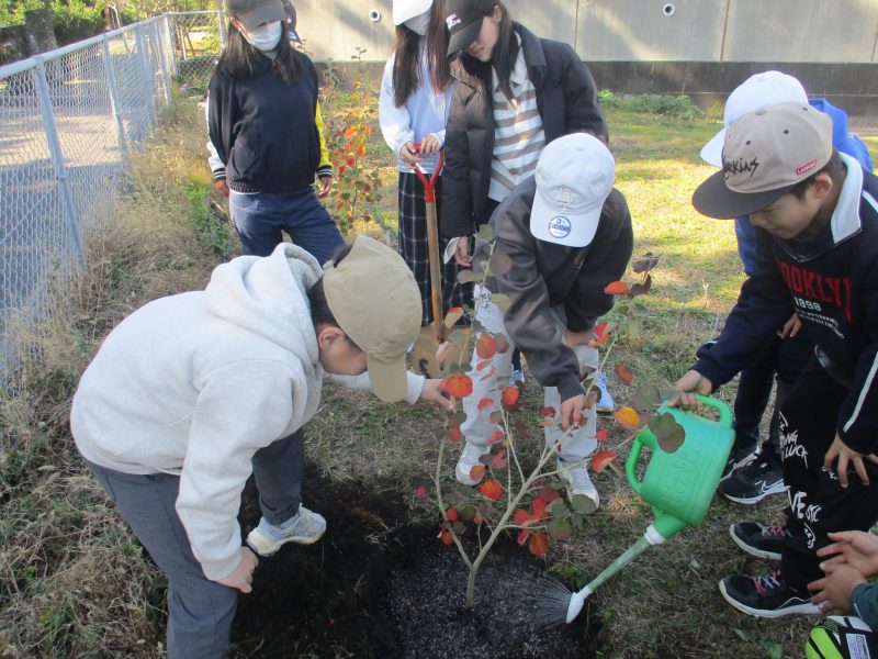 今日(11/28)は、6年生が卒業記念の植樹をしました。そのようすをお知らせします。