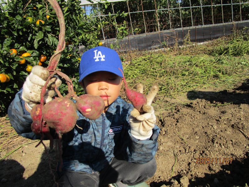 今日(11/7)は1・2年生が芋ほりをしました。そのようすをお知らせします。