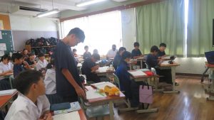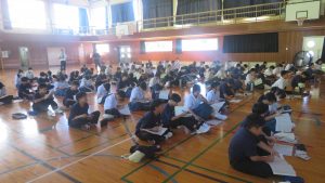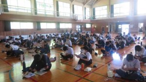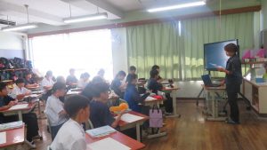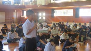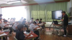 1年生の技術で養殖の授業を雄昇水産の方と一緒に行いました