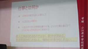 仕事とな何か、夢を持つこと、中学生へのメッセージを熱く語っていただきました