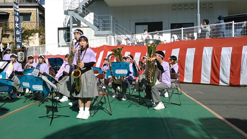 文化部【部活動】 吹奏楽部 小ヶ倉くんちに出演 【更新日】2023年11月07日 11月3日(金)小ヶ倉町大山祇神社(おおやまづみじんじゃ)下広場で4年ぶりに開催された 小ヶ倉くんち(小ヶ倉町大山祇神社大祭)に吹奏楽部か出演しました。 「お下り」のあと6番目に出場した吹奏楽部は 「長崎ゆめ総体行進曲」「愛の花」「宝島」の三曲を披露し大きな拍手に包まれました。 会場から「もってこい」の声が掛ったため さらにアンコールで「明日があるさ」と「小ヶ倉中学校 校歌」を演奏しました。 地域にも貢献ができ、大好評・大満足の吹奏楽部でした。