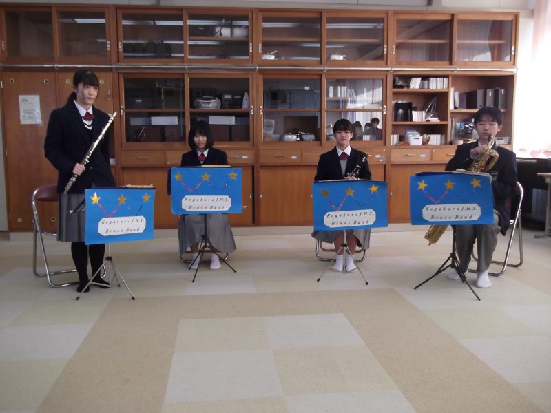文化部【部活動】 小ヶ倉中学校アンサンブル発表会☆ 【更新日】2023年12月28日 12月27日(水)本校の音楽室で、吹奏楽部によるアンサンブルコンサートが開催されました。 吹奏楽部は、全員で演奏することが多いのですが、 今回は「アンサンブル」ということで、パーカッションや木管楽器、金管楽器など 5つのバンドに分かれて演奏しました。 1年生だけのバンドもあり緊張しましたが、それぞれのよさを味わってもらうことができました。 指導してくださった先生方や応援してくださる保護者の方々に感謝です。