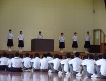 運動部【部活動】 県中総体激励会 【更新日】2024年07月19日 7月18日(木)長崎県中総体激励会を実施しました。 県中総体に出場する女子ハンドボールチームと空手道の尾上選手が力強く健闘を誓いました。 また、男子バスケットボールU15 クラブ・ユースチャンピオンシップ九州大会に出場する KOGAKURA VICTORYも紹介され、激励を受けました。 最後に、長崎県吹奏楽コンクールに出場する吹奏楽部が演奏を行いました。 夏休みの活躍を期待します。