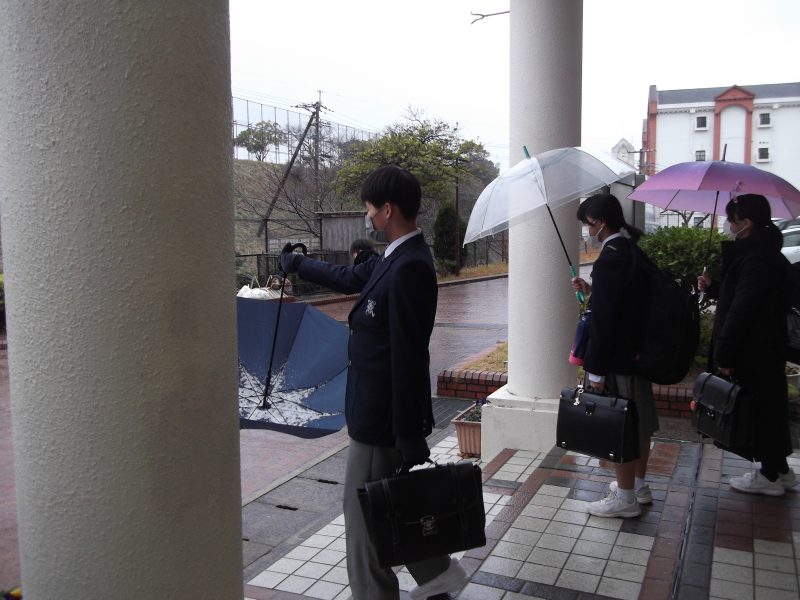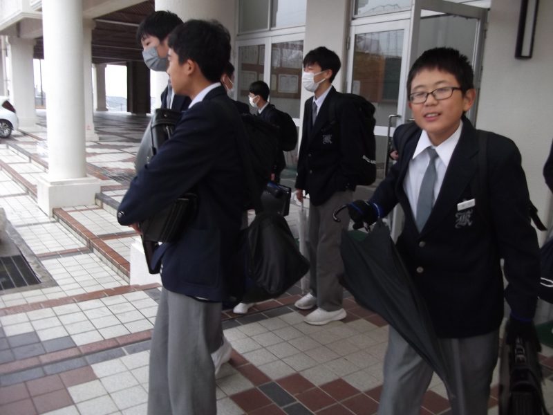12月21日の下校の様子と22日の日程について 【更新日】2023年12月21日 本日は、この後、積雪の予報のため、13時30分ころには下校しました。 雪交じりの冷たい雨が降っていましたが、生徒たちは笑顔で帰宅しました。 明日の日程はテトルでお知らせしたとおり、下記のようになっております。 12月22日(金)の日程 9:50~10:00 登校 10:10 着席完了 10:15 短学活 10:35 2学期終業式 11:35 学活 12:30 下校 部活動中止 地域によっては大雪が予想されますので、安全を第一に考え、 無理して登校することのないようにしてください。