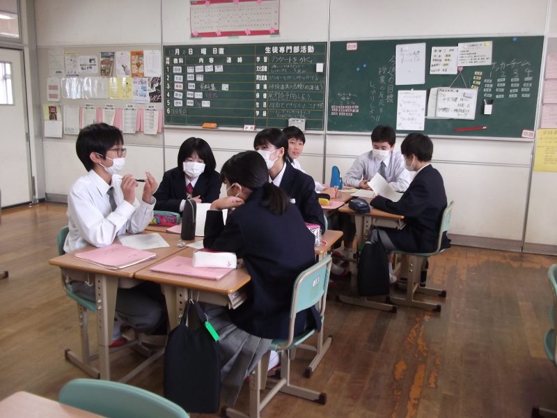 行事【学校生活】 人権学習会3 【更新日】2024年12月13日 12月10日(火)全学年で人権学習会を実施しました。 1年生は「人権標語」を作成しました。 ワークスペースで学年全員で標語のつくり方について学んだあと 教室に戻り、まず個人で考えました。 その後、班になりアドバイスし合いながら仕上げていきました。 完成した標語は、ワークスペースに掲示します。
