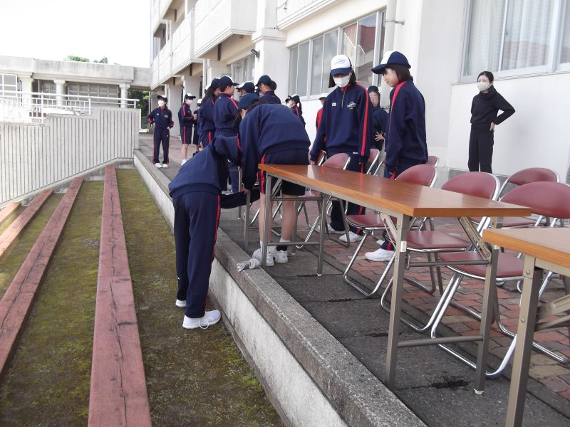 行事【学校生活】 体育大会に向けて10 【更新日】2024年05月13日 5月14日(火)体育大会が開催されます。 本校では1組:黄色、2組:青色に分かれ、縦割りで競技を行います。 5月13日(月)会場設営を行いました。 昨日の大雨がウソのようにいい天気となりました。 生徒たちは協力して、テントの設営や机の設置、草取りなどを行いました。 明日が楽しみです。