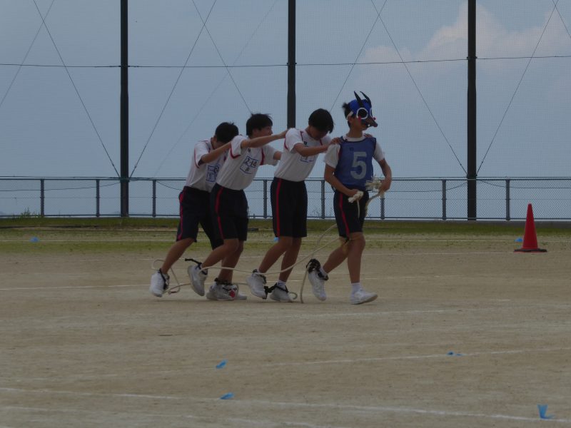 行事【学校生活】 体育大会に向けて9 【更新日】2024年05月12日 5月14日(火)体育大会が開催されます。 本校では1組:黄色、2組:青色に分かれ、縦割りで競技を行います。 5月8日(水)予行練習を行いました。 晴天の中、テントの設営から開会式、係の動き、 競技、閉会式までを通して確認し本番に備えました。 写真は、競技と閉会式の練習風景です。