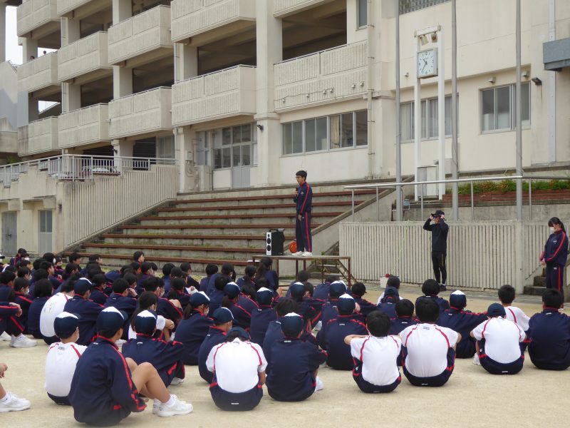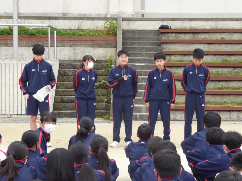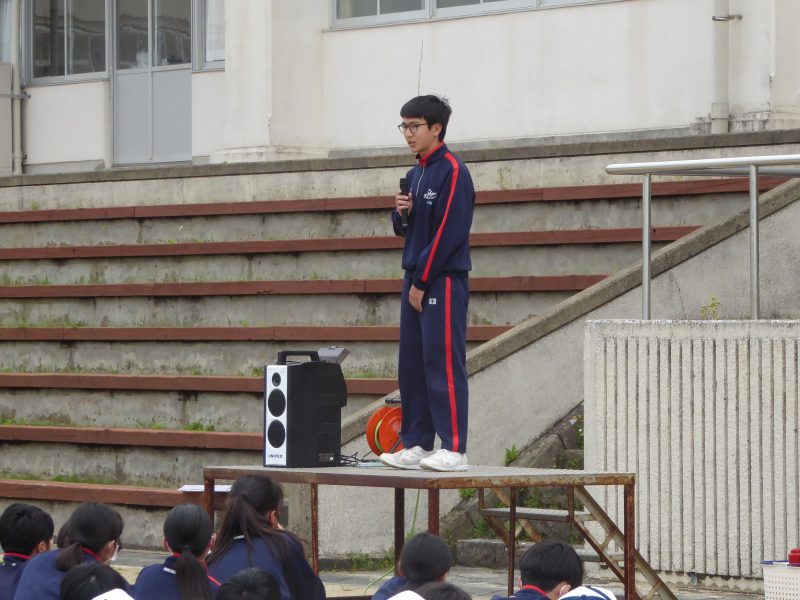 行事【学校生活】 体育大会へ向けて1 【更新日】2024年04月23日 5月12日(日)体育大会が開催されます。 本校では1組:黄色、2組:青色に分かれ、縦割りで競技を行います。 4月16日(火)に体育大会へむけて団結式を実施し 伝統の倉中ソーランの練習を行いました。