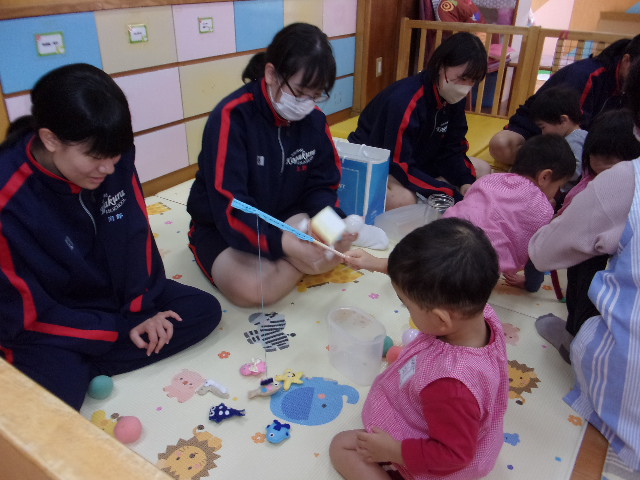 行事【学校生活】 保育実習2について 【更新日】2023年10月24日 10月23日(月)3年2組がダイヤランド保育園で保育実習を行いました。 保育士の先生から説明を受けたあと、園児たちと楽しく楽しく遊びました。 天気がよかったので、外遊びもしました。 その後、生徒から園児へ歌のプレゼントを行い、最後にお別れの会をしました。 園児たちに慕われ、名残惜しい思いの3年生たちでした。 (写真は保育園の許可をいただいて掲載しています。)