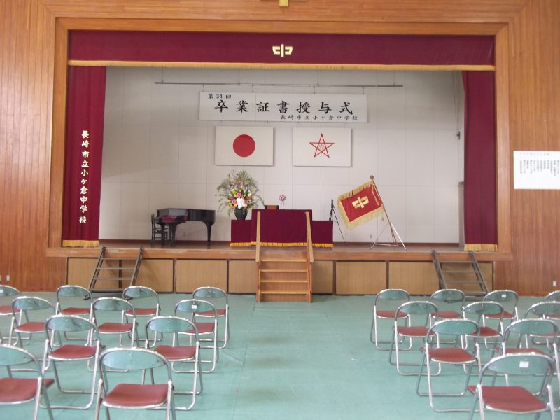 行事【学校生活】 卒業式前日の夕方の風景 【更新日】2024年03月14日 3月13日(水)卒業式前日。 生徒たちは会場設営や予行練習を頑張りました。 準備を終え、生徒たちが帰った後の体育館と校舎です。 さあ、明日は卒業式です。