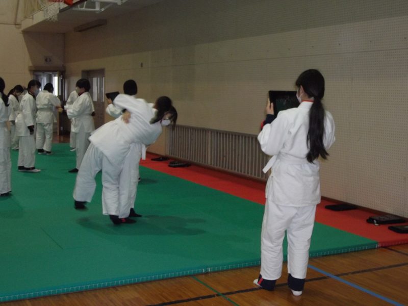 行事【学校生活】 柔道の授業を行いました 【更新日】2023年12月28日 11月~12月にかけて1・2年生は、柔道の授業を行いました。 1年生は受け身を中心に練習し、2年生は「大腰」などの投げ技にもチャレンジしました。 また、技を掛けているところをお互いにクロームブックで撮影し、 自分の技を確認したり、友達にアドバイスをしたりしました。 「礼法」に対する正しい知識と作法を身に付けることもできました。