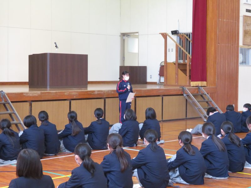 行事【学校生活】 生徒会オリエンテーション 部活動紹介 【更新日】2023年04月20日 4月13日(木)に、生徒会オリエンテーションと部活動紹介を行いました。 生徒会役員が学校での生活や専門部活動について説明を行いました。 また、部活動紹介では各部様々な工夫を凝らして日頃の活動のようすや部活動の魅力を伝えました。