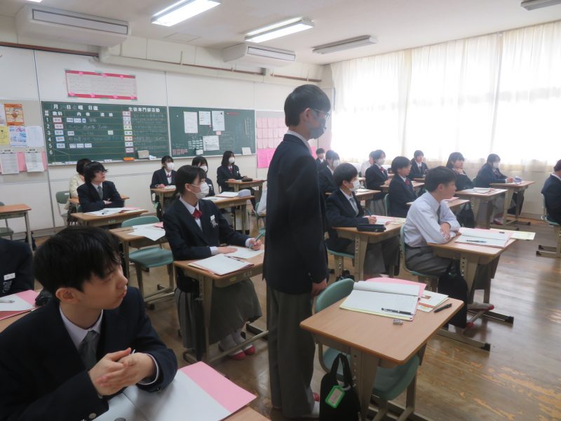 行事【学校生活】 職業講話 【更新日】2025年01月28日 1月23日(木)1年生を対象に職業講話を実施しました。 当日は、学校薬剤師の鍵本先生とJTBの浜小路様を講師としてお迎えし、 働くことの楽しさと責任について学ぶことができました。 「進学や就職を考えるうえで、とても参考になりました。」との感想が聞かれました。