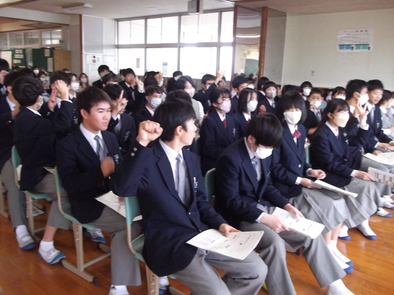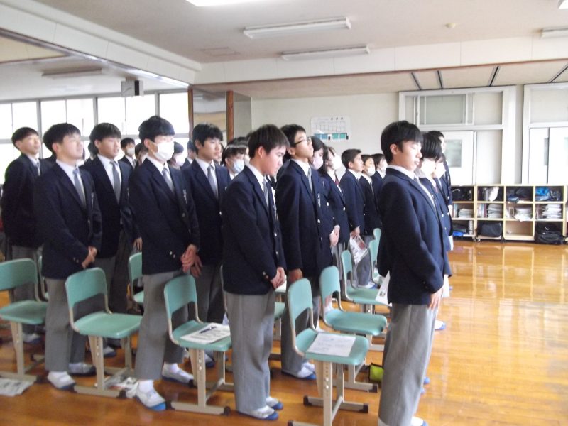 行事【学校生活】 親子勉強会(進路学習会) 【更新日】2023年12月25日 12月15日(金)2年生を対象に親子勉強会(進路学習会)が開催されました。 長崎南高校の小野下校長先生をお迎えし「高校選択と高校入試」ということテーマで 「高校を選ぶために必要な知識」や「自ら調べて、自ら選ぶ決意」の大切さと学びました。 また、令和7年度から大きく変わる公立高校入試の説明を受け、 多くの生徒が入試を自分のこととして捉えることができました。 「親子で進路について考えたり話したりするきっかけとなる勉強会」となりました。 小野下校長先生ありがとうございました。