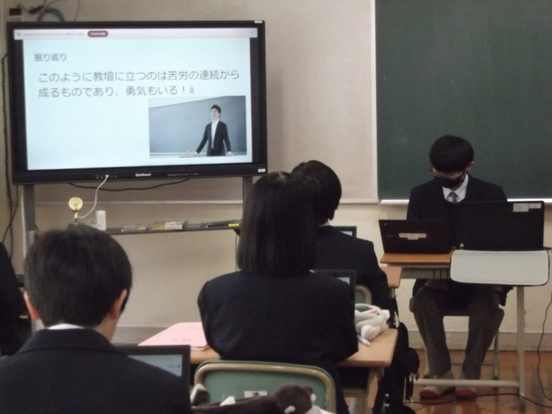 行事【学校生活】 進路学習発表会 【更新日】2025年02月27日 2月21日(金)1年生は進路学習発表会を開きました。 各学級で、一人ひとつずつ職業について調べたことを2~3分程度で発表しました。 美容師や医師、教師、販売業など様々仕事についての発表があり、とても興味深いものでした。 発表を聞いた生徒たちは感想を入力し、互いに意見を共有し合いました。 将来、職業を選択する際、この授業が参考になるといいですね。