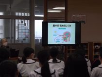 行事【学校生活】 長崎っ子「食育教室」 【更新日】2024年07月03日 7月1日(月)3年生の食育教室を行いました。 「受験期の食事」という3年生にとっては重要なテーマで 南長崎小学校の前田栄養教諭から講話をいただきました。 早い生徒は12月から受験が始まるので、 「脳によい食べ物は何なのか」「朝ごはんはどんなメニューがよいか」など 興味深く、学ぶことができました。 3年生は、給食が今年までなので、名残惜しいという声が聞こえてきました。 講話の後には、早速、クロームブックで感想を記入したりアンケートに答えてたりしました。