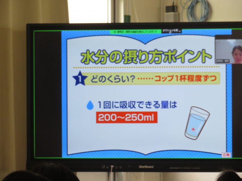 行事【学校生活】 食育出前授業「熱中症予防」 【更新日】2024年05月30日 5月28日(火)熱中症予防のため「水分補給」の大切さについて 明治食育セミナー出前授業をWEBで受けました。 1年生から3年生までが各教室で「水分の摂り方ポイント」や「熱中症になってしまったら?」 などについて考えながら学びました。 これから暑くなりますので、今日の学びを生かしていきたいと思います。