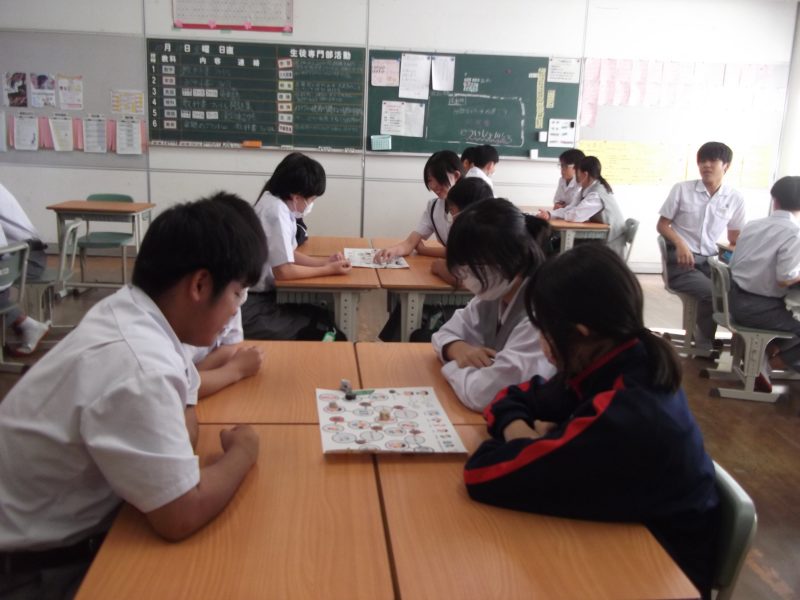 行事【学校生活】 10月の授業風景5 【更新日】2024年10月30日 1年1組は英語の授業です。 アティラ先生と一緒にboard game(英語のすごろく)をしました。 じゃんけんをで順番を決め、サイコロを振って消しゴムのこまを進めていきます。 楽しみながら英語を学ぶことができました。