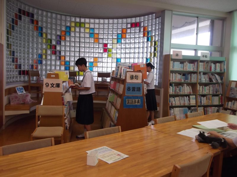行事【学校生活】 6月の昼休みの図書室 【更新日】2024年06月28日 梅雨に入り、雨の日が多なりました。 昼休みも外で遊ぶことができません。 そこで、図書室で本を読んだり、学習をしたりする生徒たちが増えました。 図書部員も貸し出しに精を出してくれています。