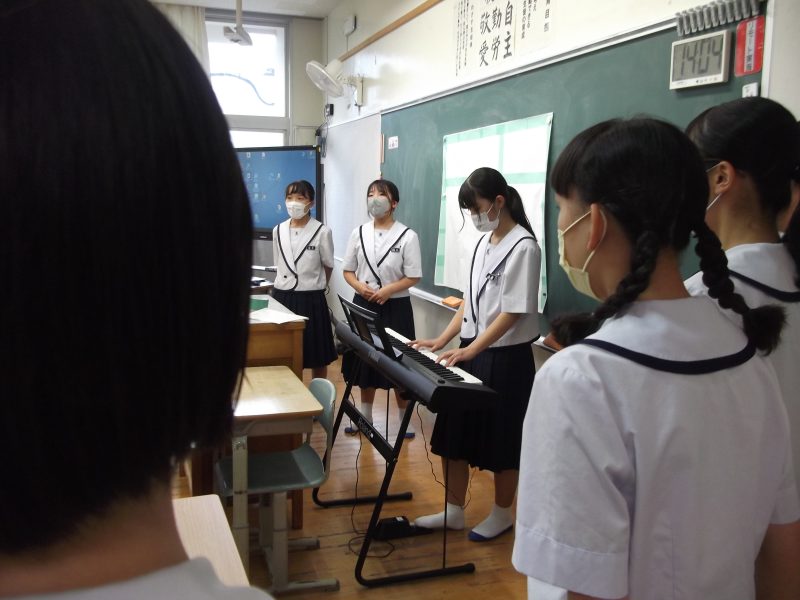 行事【学校生活】 9月21日 合唱コンクールに向けて② 【更新日】2023年09月21日 現在小ヶ倉中学校では、合唱コンクールに向けて生徒が一丸となって取り組んでいます。 9月22日(金)がリハーサル 9月28日(木)が本番です。 当日は、保護者、来賓、南長崎小学校の5年生をお迎えし、 精一杯の合唱をお届けしたいと思います。 合唱コンクールの日は、生徒は「弁当の日」となりますのでよろしくお願いします。 2年生は課題曲が「あさがお」 1組自由曲が「My Own Road ~僕が創る明日 」、2組自由曲が「COSMOS」です。 2年生の練習風景をご覧ください。