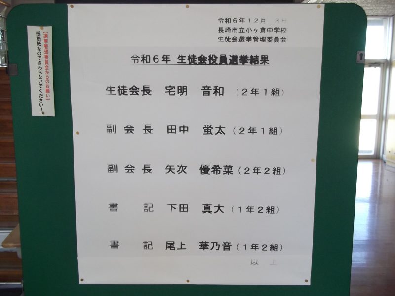 12月2日(月)生徒会役員選挙が行われ、新生徒会役員が選出されました。