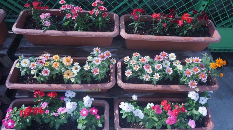 庁務員と事務の先生が苗を植え替え、整えてくださったものです。