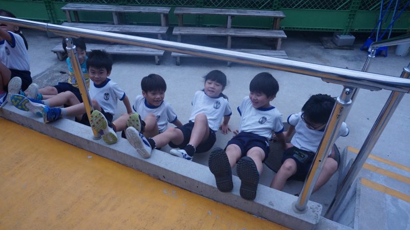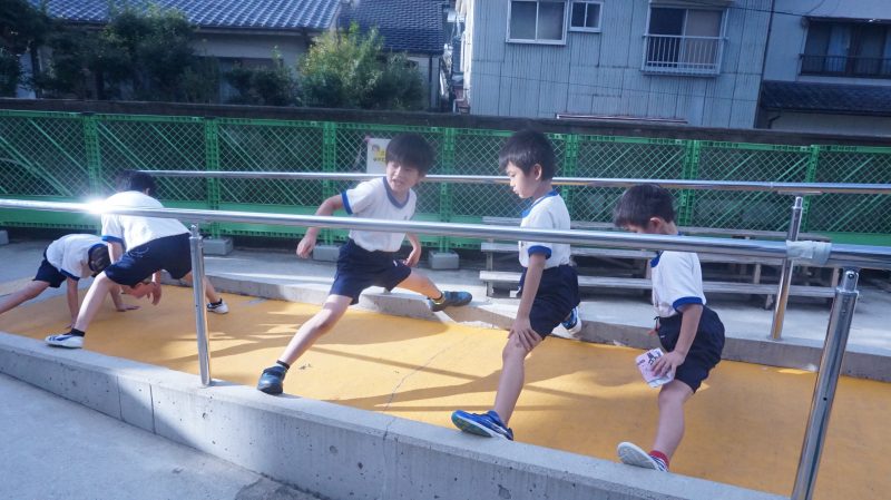 他にもスロープを使って、身体の柔軟性を高めている?子や登校してきた子や出勤してきた先生とジャンケンする子もいます。