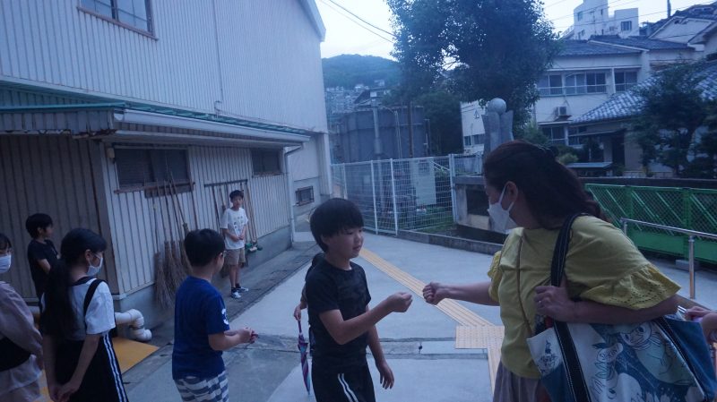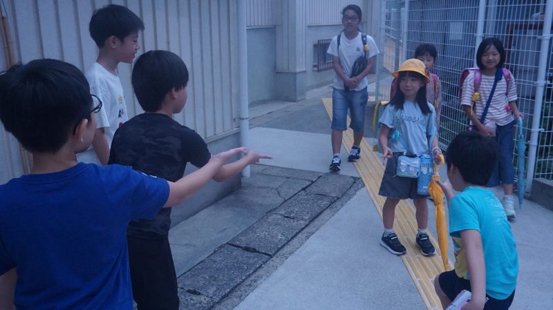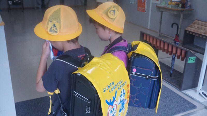 朝、登校してきて多くの子どもたちが教室で準備を済ませ、玄関に下りてきます。