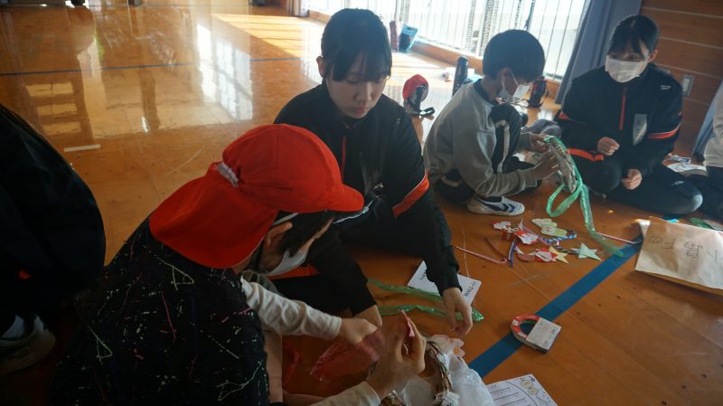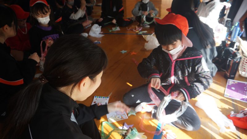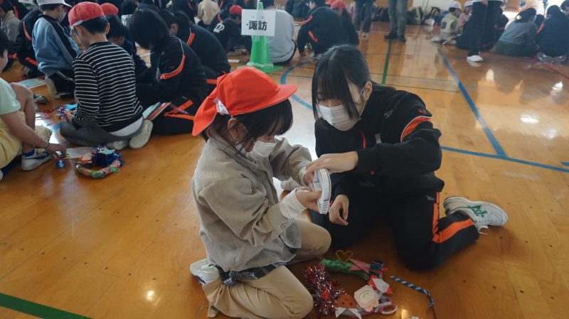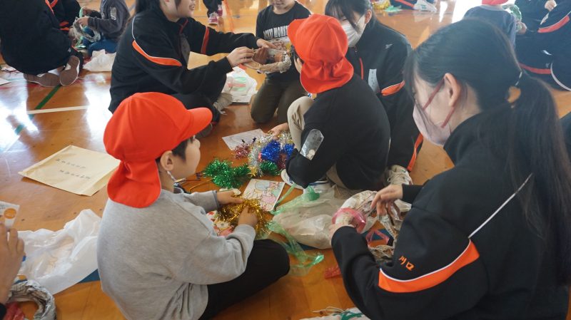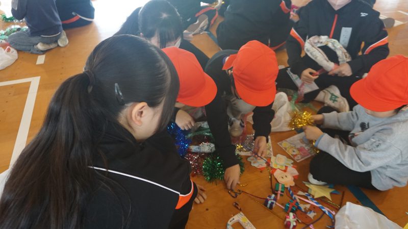 近隣の小学校4校の子どもたちと長崎女子商業高等学校の生徒さんたちと一緒にXmasリースづくりやゲームをして楽しいひとときを過ごしました♪