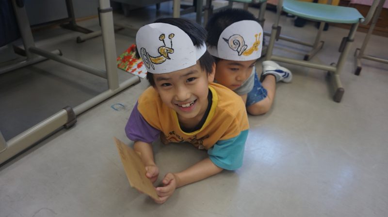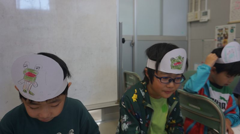それぞれが、がまくん、かえるくん、かたつむりくん、ナレーターの役を担当し、練習の成果を披露しました。