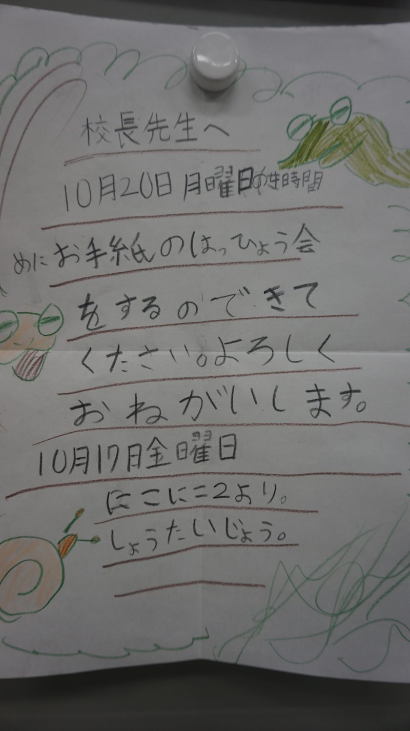用件は、国語科で学習している物語「お手紙」(アーノルド・ローベル作)の音読劇へのご招待でした。