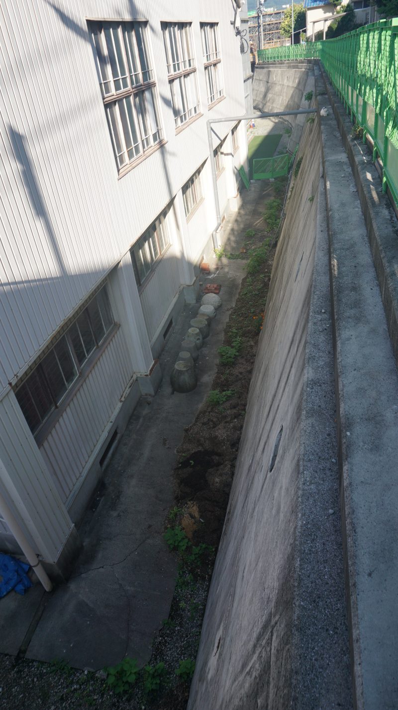 添付画像のとおり体育館裏の雑草がキレイに無くなっていたのです。