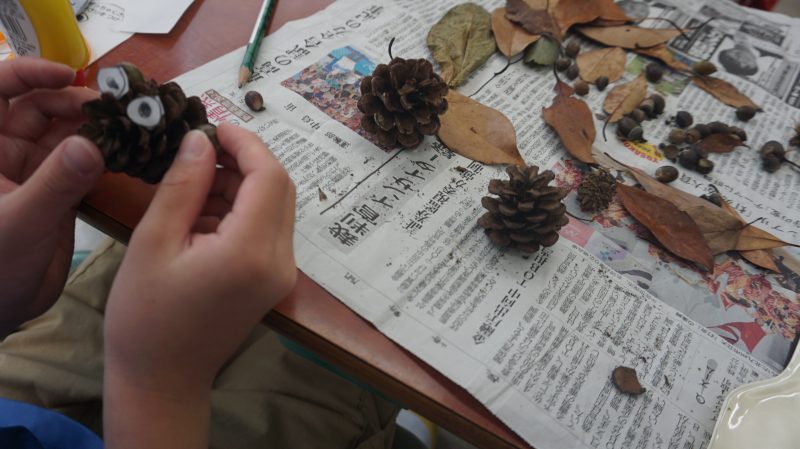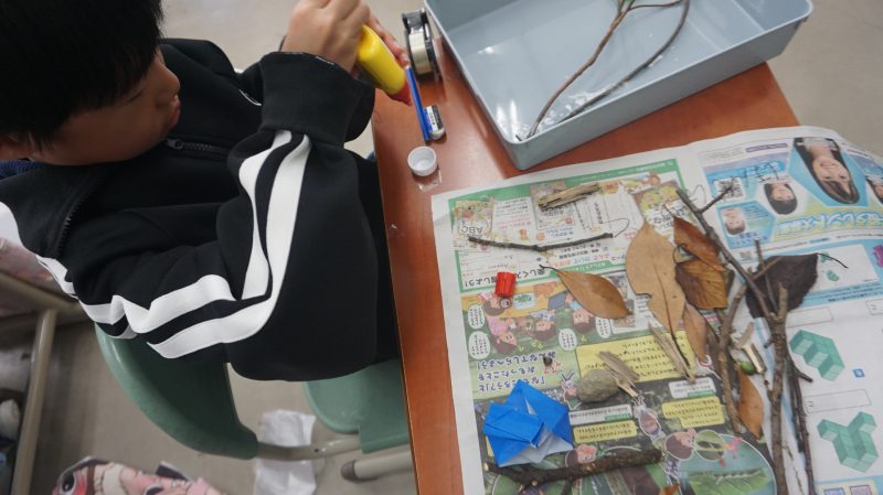 1年生【学校生活】 (1年生)「秋の宝物」を使って、おもちゃをつくっています! 【更新日】2025年10月29日 10月29日(水) 生活科の時間では、先日の校外学習で手に入れた木の葉や枝、地域の方や職員からいただいた松ぼっくりやドングリ等、たくさんの「秋の宝物」を使って、おもちゃ作りに取り組んでいます。 子どもたちは、生き生きした表情で創作活動に没頭しています。 何枚か画像を添付しております。 小さな芸術家たちの作品と活動の様子をどうぞご覧ください(^^♪