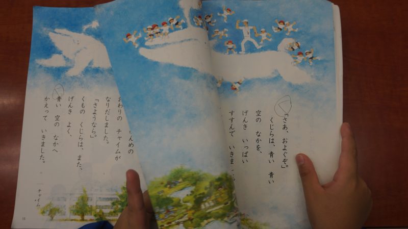1年生【学校生活】 (1年生)くじらぐも、よんでみたよ♪ 【更新日】2025年11月07日 11月7日(金) 国語科で学習している「くじらぐも」。 秋晴れの天気のよいタイミングで、校舎玄関に出て、くじらぐもを呼んでみました。 輪になって、大きな声で「天までとどけ。1・2・3!」 子どもたちの声が響きました! 今週の月曜日、ビッグNでもやってみました。 ビッグNの上には、秋の空が広がっていました。 白い雲も見えて、本当にくじらぐもがやってくるとイイな・・・(^^♪