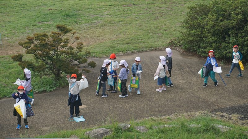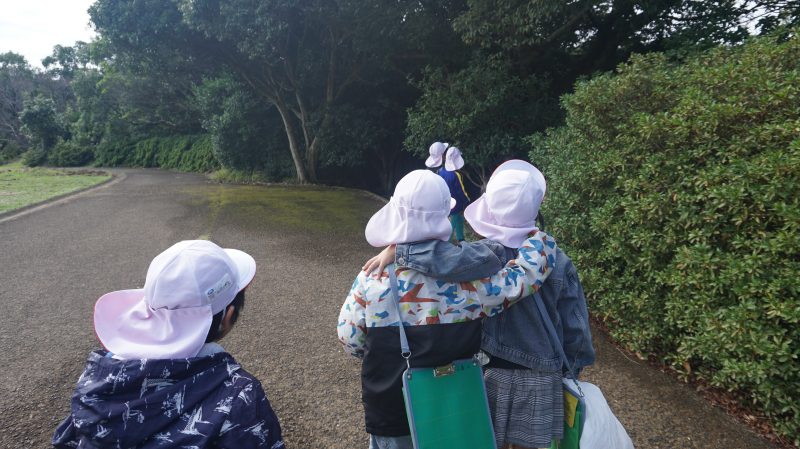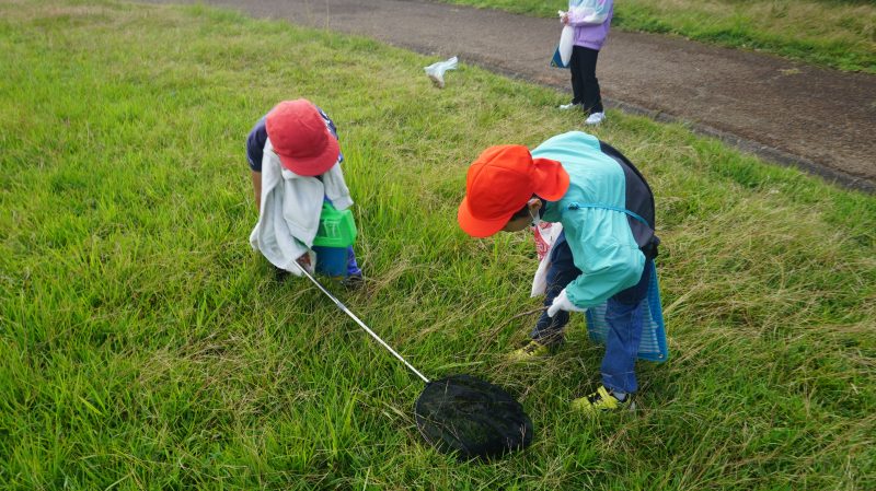 子どもたちは、虫捕り網や虫籠を手にルンルン気分で元気よく歩きました。