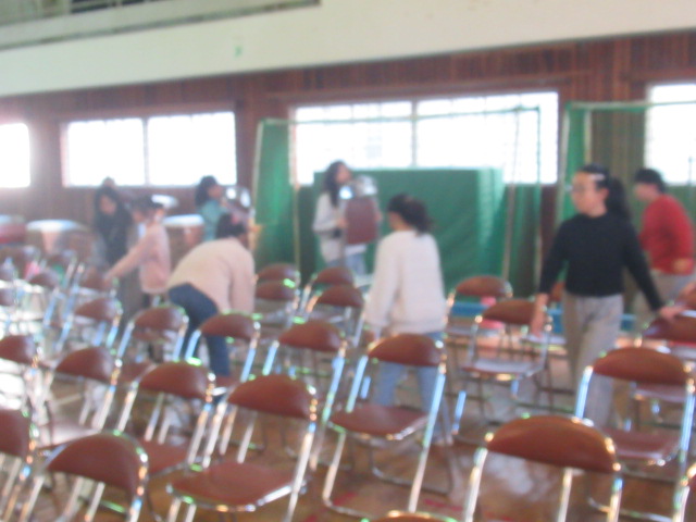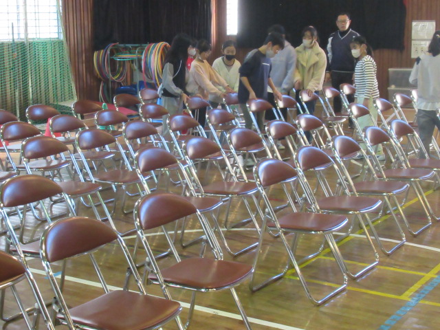 短時間で体育館の椅子が整然と並べられ、会場は準備万端となりました。