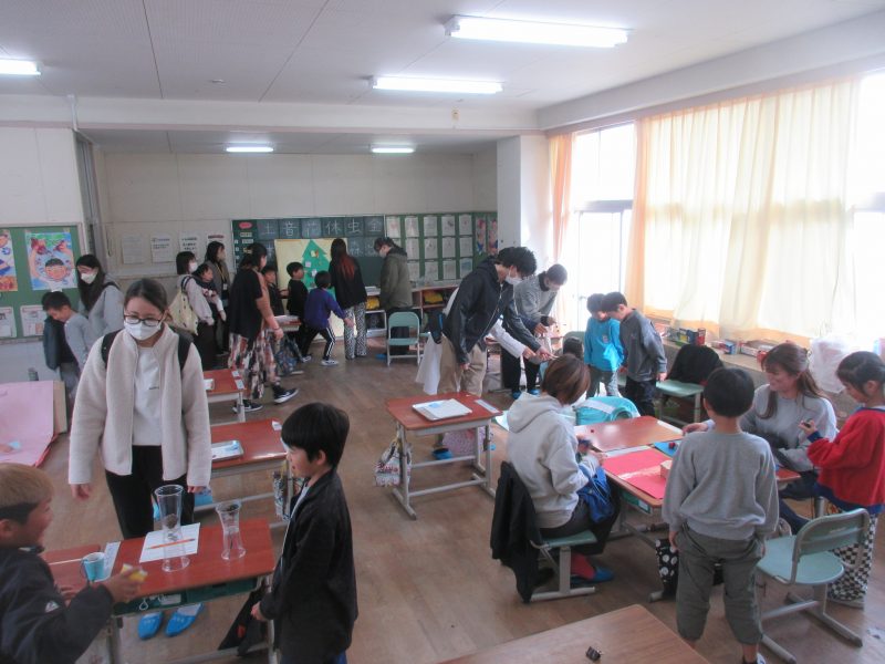 1年生は生活科で秋のテーマパークをそれぞれが担当し、保護者の方々がお客さんになって遊んでもらいました。よくできたテーマパークでした。