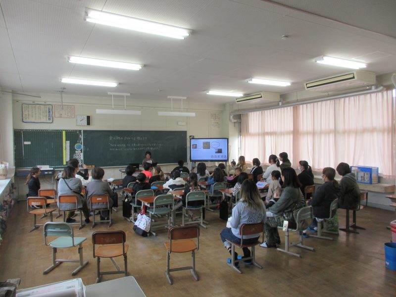 3年生は国語「すがたをかえる大豆」の学習をいかして自分たちで調べたことをパソコンをつかいながら上手に発表していました。保護者の方々が観られているので緊張したことでしょう。