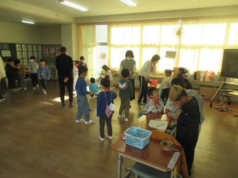 学校風景【学校生活】 香焼保育所との交流会 【更新日】2025年12月09日 来年1年生になる香焼保育所のみなさんが、香焼小学校にきてくれました。 出迎えてくれたのは1年生。 この日のために、いろんな準備をしてきました。 教室では、読み聞かせや手遊び、そして自分たちで考えたゲームコーナーで、保育所のみなさんを楽しませていました。 4月から入学してはや9か月。子どもたちの姿をみていると、体も心も着実に成長していることを感じ、大変うれしいひと時でした。 保育所のみなさん、また遊びにきてね。