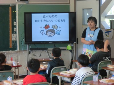 R7 2学期【学校生活】 10/2(木)食育指導 【更新日】2025年10月28日 今年も栄養士の宮崎先生に来校していただき、食育指導を行っています。今日は3年生に対して、食育指導を行っていただきました。バランスのよい食事の大切さを学びました。