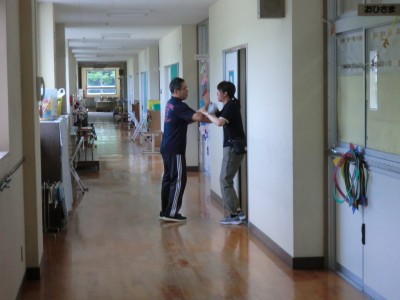 不審者対応についての避難訓練を行いました。教師の動き、児童の動きを確認しました。