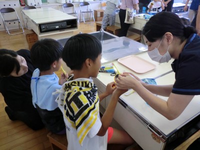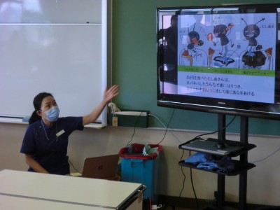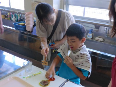 R7 2学期【学校生活】 9/29(月)歯みがき指導教室(1・4年生) 【更新日】2025年10月28日 学校歯科医である出口先生を講師に招き、歯みがき指導教室を実施しました。ビデオをつかって虫歯のでき方について学んだり、正しいブラッシングの仕方を教えていただきました。その後は、実際に歯垢の染め出しを行いました。