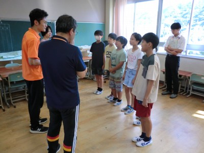 R7 2学期【学校生活】 9/8(月)小体会選手結団式 【更新日】2025年10月27日 小体会に向けての練習が始まります。この日は種目ごとに6年生と指導する先生との顔合わせを行いました。今年から新しい種目になり、三原小は「フットホッケー」と「フラッグフットボール」「球入れ」の3種目に出場します。しっかりと練習をして、本番で力が発揮できることを願っています。