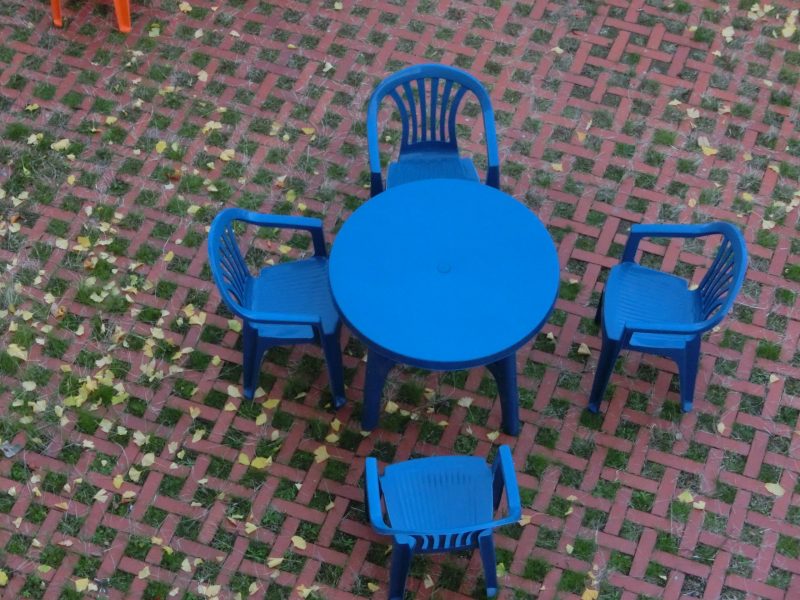 みなさん。サードプレイスということばを御存知ですか?ファーストプレイスが家庭、セカンドプレイスが学校(教室)・職場、そして、サードプレイスが自分が落ち着けるお気に入りの場所。今後、生徒が生きていくうえで、そのようなお気に入りの場所を見つけることは、有意義な人生を送る上でたいへん大切なことだと思います。感染対策も兼ね、生徒たちが落ち着ける居場所を屋外にできないか検討していましたが、今回PTA会長さんをはじめ役員の方々の御協力をいただき、武道場前のスペースにテーブルとイスを置き、サードプレイスを設置しました。今後も生徒たちがリラックスして過ごせる環境を作っていきたいと思っています。