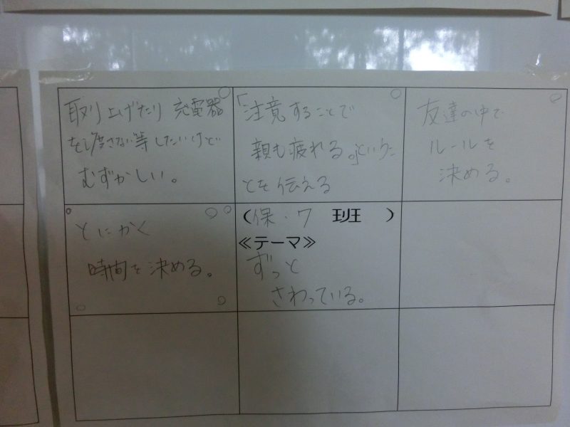 「ファミリープログラム」から「わが家のルール」作りへ① 【更新日】2022年07月04日 教育週間中95名の保護者の方々に御来校いただきありがとうございました。土曜日授業で実施しましたファミリープログラムでは、生徒・保護者の皆様方から多くの意見が出され、たいへん有意義な時間になりました。本日よりファミリープログラムで出された意見を紹介します。
