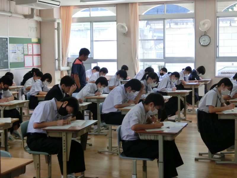 中間テスト受験風景 【更新日】2021年10月15日 昨日と本日の2日間中間テストを実施しています。生徒たちは真剣な表情で問題に取り組んでいました。あいさつ運動の時「テストがんばれと声をかける」と笑顔で「ありがとうございます」と返してくれます。「ありがとう」と言える生徒が多いのは、三川中学校のすばらしさだと思います。 来週は「緑風祭」です。テスト勉強と緑風祭の練習が重なり、生徒たちは多忙な日々を送っています。