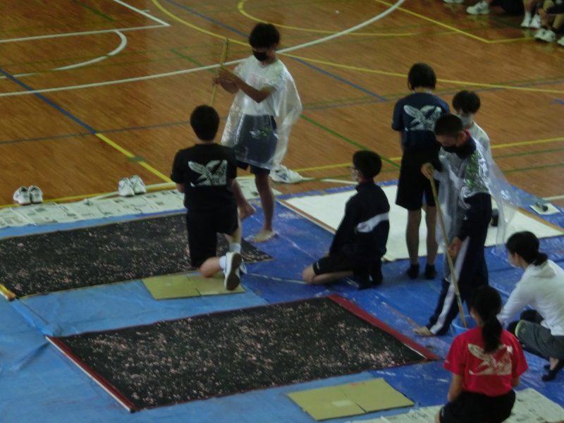 体育大会恒例 書道パフォーマンス 【更新日】2022年05月13日 今年も体育大会恒例書道パフォーマンスが行われ、体育大会のテーマを美術部・有志を中心に書きました。今年のテーマは「戮力協心」(りくりょくきょうしん)~誰もが主役になれる熱い瞬間を~」です。一人一人が主役になれる体育大会になることを期待します。