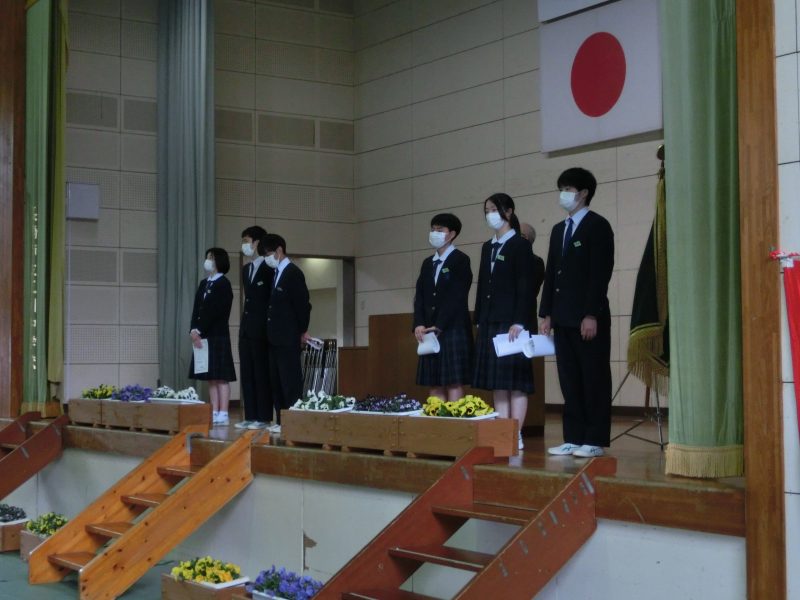 卒業式予行練習・皆勤賞表彰式・最後の給食メニュー 【更新日】2022年03月14日 本日は卒業式の予行練習が行われ、卒業生・在校生共によく頑張っていました。また、皆勤賞の表彰があり、3年間無欠席の6名が表彰されました。明日が感動的な卒業式になることを期待します。