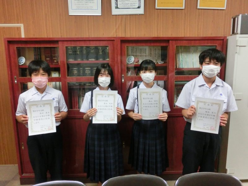 本日、2学期学級委員の任命式を感染対策のため、放送を使い実施しました。