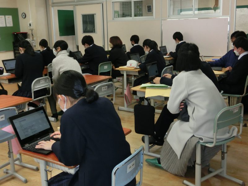 授業参観 【更新日】2021年12月17日 本日は授業参観・学年PTAが開催され、寒さ厳しい中、多くの保護者のみなさんに出席していただきました。本日の授業はすべての学級でタブレットを活用した授業を展開し、中には親子でタブレットを使う場面もありました。その後、1年生の学年PTAに参加し①学校評価から見える生徒の成長②GIGAスクール構想について③学校ホームページについて話をさせていただきました。保護者のみなさま、寒い中、学校に足を運んでいただきありがとうございました。また、2学期お世話になりました。